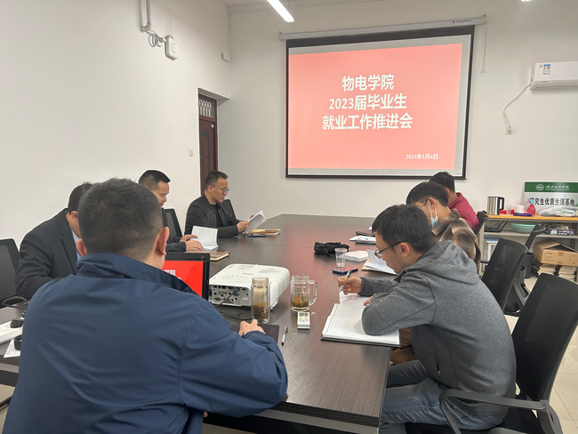 为更好地推进物电学院2023届毕业生就业工作,3月6日下午,Beat365唯一官方网站在A503召开2023届毕业生就业工作推进会。会议由学院党总支副书记张玉龙主持,院长王绍明、党总支书记石义杰、副院长欧修龙、教研室主任余磊、团委书记刘鑫、辅导员李朦、范志鹏参加。
