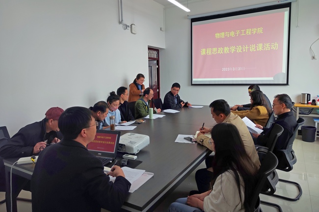 为深入实施《高等学校课程思政建设指导纲要》,提升教师课程思政教学能力,3月31日下午,物理学院在崇文楼A503开展课程思政说课活动。本次活动由院长助理欧修龙主持,物电学院党总支书记石义杰、全院教师参加活动。