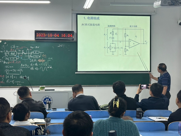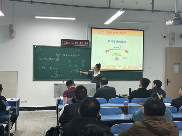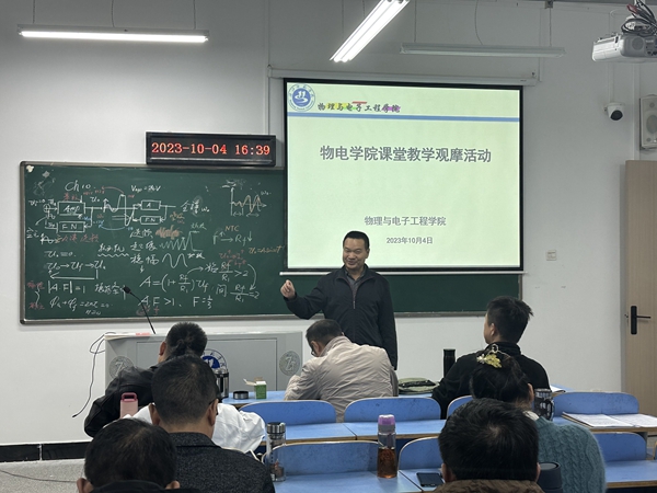 为更好营造“重视教学,崇尚创新”的教学文化氛围,深入推进本科教学工作合格评估,根据学校“教学督导月”活动安排,10月4日下午,物电学院教学观摩活动在崇文楼A709教室举行,江锐、刘亚丽两位老师示范授课。学院领导班子、全体专任教师观摩了示范课,活动由副院长欧修龙主持。