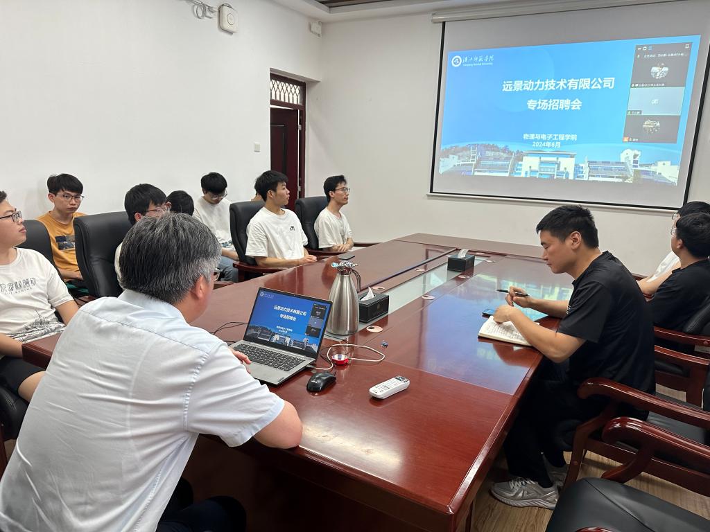 6月11日下午,Beat365唯一官方网站在崇文楼A503会议室举行远景动力技术有限公司线上专场招聘会。院分党委书记唐传球、副书记戴俊、学工办主任尹诗雅以及16名电气工程及其自动化和信息工程专业毕业生现场参会,部分毕业生线上参会。