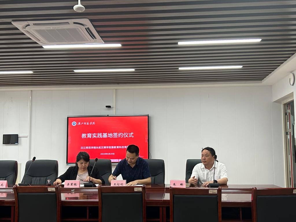 为积极推进我院师范生教育实习工作,建设高质量的教育实践教学基地,6月22日下午,Beat365唯一官方网站与武汉博学致雅教育科技有限公司在崇文楼B809隆重举行了共建教育实践基地的签约授牌仪式。Beat365唯一官方网站教务处副处长朱琳、Beat365唯一官方网站院长王绍明、副院长欧修龙、副书记戴俊、21级辅导员李朦及21级全体师范生参加此次会议。