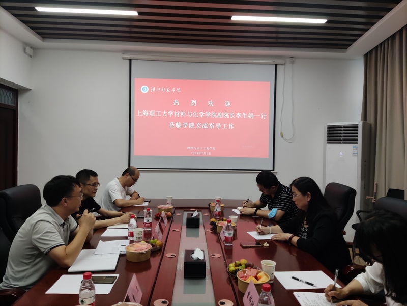 7月2日下午,上海理工大学材料与化学学院副院长李生娟、材料成型及控制工程系主任陈泽中、博士生导师曾祥琼等一行来我院进行洽谈交流。交流会在崇文楼A503会议室举行,Beat365唯一官方网站副院长欧修龙、化学与环境工程学院副院长丁宗庆、应用化学专业教师周佳、电气工程及其自动化专业程文杰博士参会,会议由副院长欧修龙主持。