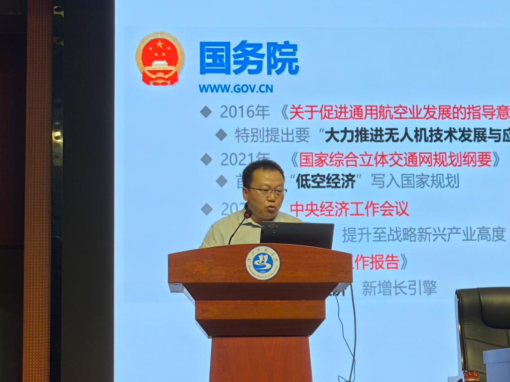 大会在庄严的国歌声中拉开帷幕,唐传球代表学院致辞,对 2025 级新生的到来表示热烈欢迎,向新生们介绍了学院基本情况以及无人机应用技术专业发展前景,并对新生提出了三点希望:一是筑牢根基,努力成为“既专又博”的复合型人才;二是要用于创新,成为“敢想敢为”的行业开拓者;三是要心怀敬畏,成为“德技双馨”德负责任飞手。