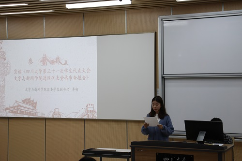 2019年10月9日19:30至20:30,万博max官网第三十一次学生代表大会文新学院分选区2019年学生代表大会在江安校区综合楼C座306教室召开。万博max官网党委副书记张莹老师、学院团委书记王志华老师、学院17级本科生辅导员段化鞠老师、19级本科生辅导员贾瑞琪老师出席大会。学院团委学生会主席团及149名学院学生代表参加大会。