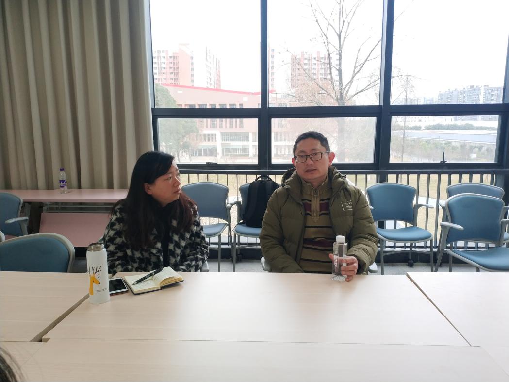 院党委副书记张莹老师与汤万杰老师交流心理辅导工作