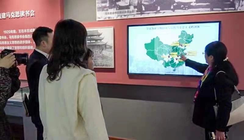 参访过程中,万博官网师生不时驻足,俯身靠近展柜内的文物仔细阅看,一字一句地品读着每一张老照片背后的故事。其中一块电子展板尤其惹人注目,上面勾勒着马克思读书会的创办始末,并以地图呈现出全国早期马克思主义的研究与传播情况,这引发了参访师生的关注与思索。万博官网副院长操慧教授说,中国这些最早燃起马克思之光的地方,往往与丰富的报业实践活动伴生,其背后所折射的新闻与历史的互构关系以及新闻对进步思想的启蒙作用值得我们深入研究。