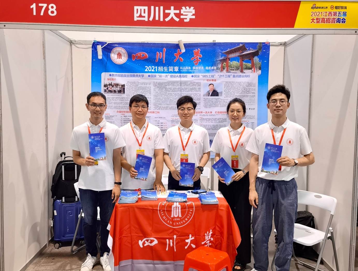 2021年6月23日至26日,我校受邀参加“2021江西第五届大型高招咨询会”“江西师大附中高招咨询会”“江西省九江一中高招咨询会”“江西省莲塘一中高招咨询会”“江西省鹰潭一中高招咨询会”。江西省是万博官网对口招生省份,为更好适应高考改革的新要求和新目标,吸引更多优质生源,学院特委派戏剧与影视文学教研室吴民副教授、语言学与对外汉语教研室韩江华副教授、比较文学与世界文学教研室赵心竹老师、广告学与符号学教研室王陌潇老师、新闻学教研室骆世查老师、招生工作联络员刘天泉老师等成立工作组分别前往江西省赣州市、九江市、南昌市、鹰潭市等地开展招生宣传联络工作。