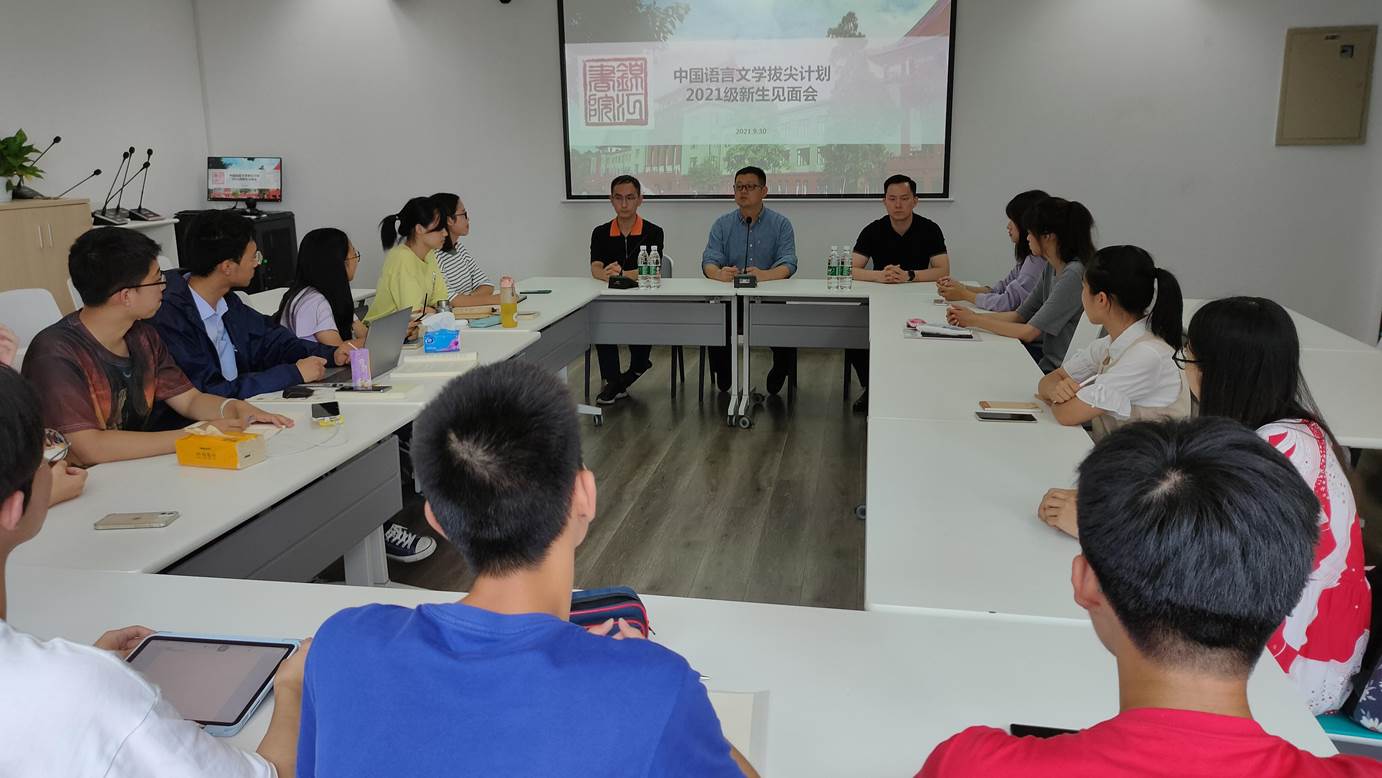 2021年9月30日下午2:30,万博官网于文科楼一区锦江书院举行中国语言文学拔尖计划2021级新生见面会。中国语言文学拔尖计划执行主任、万博max官网副院长周维东教授,2021级中国语言文学拔尖计划班主任吕东老师,中国语言文学拔尖计划项目秘书刘天泉老师参加见面会,本次见面会由周维东教授主持。