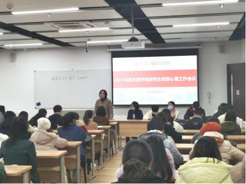 2021年12月1日中午,万博官网“研究生班级心理会议”在文科楼一区109召开。万博官网党委副书记张莹老师、文新嘤鸣坊负责人段化鞠老师、博士生辅导员吴光芬老师、2021级硕士辅导员王志华老师、2020级硕士辅导员雷子慧老师、2019级硕士辅导员陈羲老师以及研究生各班级心理工作负责人等80多人参加了会议。