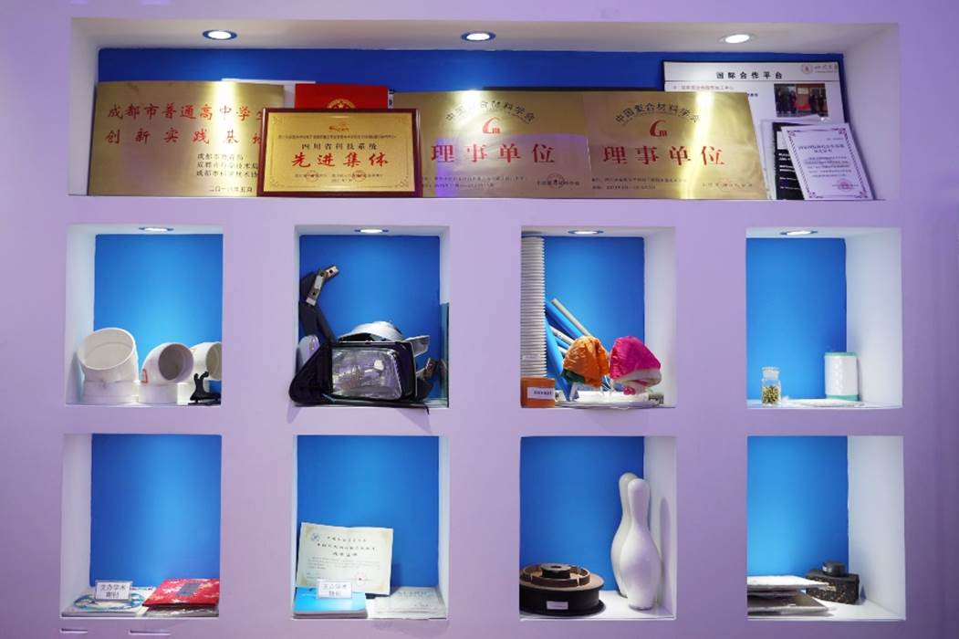 这样的热爱流露于与文新师生交流的许多细节中。在交谈中,针对有环保人士认为“塑料就是洪水猛兽”,老师们认为不能因不规范使用和处置废弃塑料导致了污染而将塑料本身妖魔化。事实上,小至骨螺钉、经鼻吸入器等微型功能器件,大至潜艇、航母等国之重器;近至家具、汽车等日常用品,远至火箭、卫星等航天科技,我们生活的方方面面都离不开塑料。为做好高分子材料的科普宣传,学科在2021年秋季学期开设了面向全校的科普公选课程,希望更多的非本学科的学生也能感受到高分子学科的魅力。