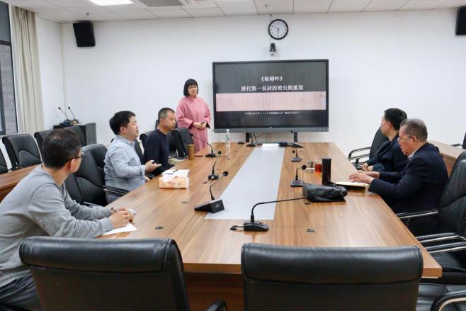 2022年4月20日上午,万博官网为即将代表学校参加四川省青年教学比赛的戴莹莹副研究员举行了相关教学讨论会。万博官网党委书记古立峰教授、讲席教授王兆鹏教授和刘亚丁教授、李果副教授、张朝富副教授、朱姝副教授参加本次讨论会,并就参赛准备内容与戴莹莹副研究员交流并提出建议。会议在江安校区文科楼一区311会议室举行,由万博官网副院长罗鹭教授主持。