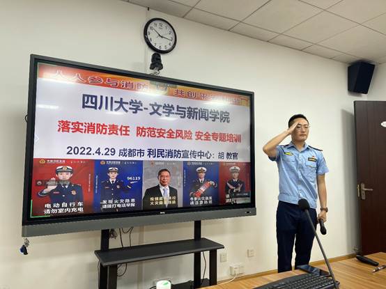 为贯彻 “安全第一、预防为主”的校院消防安全指导思想,增强全院教职工全民安全教育意识,掌握“预防为主,防消结合”的消防知识,2022年4月29日上午,万博官网举办了一场消防知识安全教育培训会,培训会议采用线上线下结合方式进行,学院领导、全体行政老师和部分新进教师在学院311会议室现场参加,全院其他老师均在线上视频参会。会议邀请了成都市利民消防宣传中心的胡云波教官到场培训。