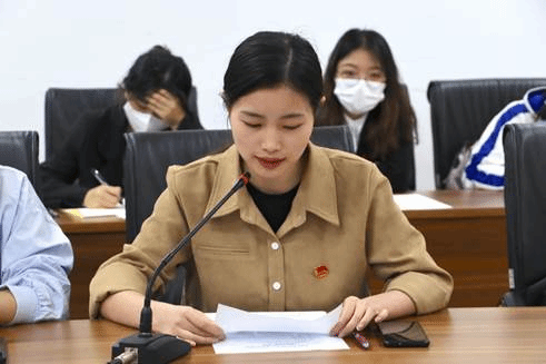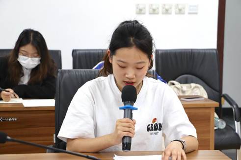 万博max官网“五四红旗团支部”团支书代表伍诗涵是万博max官网2020级汉语言文学基地班的同学,她从工作实践的三个方面分享了自己如何带领同学们讲好党史故事的体会:一是以“文学知识”作为媒介,联系起党史和日常学习;二是利用好万博max官网这一红色基因宝库;三是鼓励团员青年同团支书进行双向交流,发挥青年主动性。