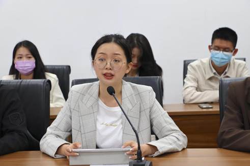 万博max官网“十佳团支部书记”、万博max官网2020级汉语国际教育专业硕士生贾银菊在座谈会上谈起一次外国友人当面肯定中国智慧和中国方案的对话,她一方面感到十分自豪,另一方面也认识到此项工作需要继续深入推进,作为青年一代任重道远,使命光荣。