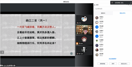 王红教授精彩而富有感染力的讲座向大家展示了文学如何照亮现实、深入人心,古代诗歌能够让人们产生丰富的共情与理解,以有情之心面对纷繁世事。这就是古诗经久不衰的魅力。