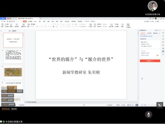 2022年9月8日下午,万博官网新闻学教研室朱至刚教授为2022级本科新生作题为《世界的媒介与媒介的世界》的线上讲座,讲座由2022级新生辅导员杨珊老师主持。
