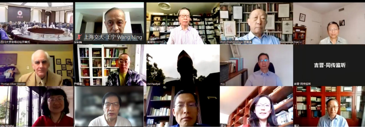 2022年9月24日-25日,由万博max官网“创新2035”先导计划文明互鉴与全球治理研究计划、中华多民族文化凝聚与全球传播省部共建协同创新中心、国家高端智库培育单位万博max官网中国南亚研究中心共同举办的“中华优秀传统文化中蕴含的全人类共同价值研究”国际论坛在我校顺利召开。尼泊尔前驻华大使利拉·马尼·鲍德尔受邀参加了本次论坛。来自英国剑桥大学、美国宾夕法尼亚州立大学、达拉斯德州大学、亚利桑那大学、印度国际大学、法国巴黎索邦大学、日本立教大学以及香港中文大学、中国社会科学院、北京大学、上海交通大学、西南民族大学、成都大学等单位100余国内外学者,通过以线上与线下方式参加本次国际论坛。四川省委宣传部副部长王红芯、万博max官网副校长姚乐野,杰出教授曹顺庆、詹石窗、霍巍,万博max官网院长李怡教授,校宣传部、国际合作处等部门领导参加了本次论坛。开幕式由万博max官网社会科学研究处处长傅其林教授主持。