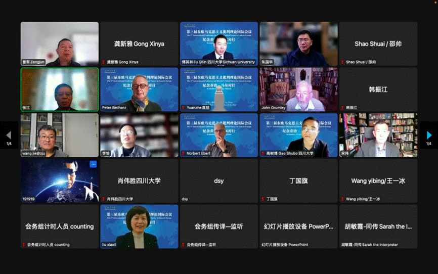 2022年11月18日-21日,由万博max官网、国家社科基金重大招标项目“东欧马克思主义美学文献整理与研究”课题组主办,澳大利亚《论题十一》(Thesis Eleven)杂志社、马克思主义文艺理论研究中心、中华美学学会马克思主义美学专业委员会协办的“第三届东欧马克思主义批判理论国际会议”在万博max官网召开。来自澳大利亚拉筹伯大学、悉尼大学、蒙纳士大学、麦考瑞大学、英国伦敦大学、斯洛文尼亚卢布尔雅那大学以及中国社会科学院、中国人民大学、复旦大学、浙江大学、上海交通大学、黑龙江大学等机构的100余位专家学者参加了本次会议。中国文学批评学会会长、原中国社会科学院副院长、《中国社会科学》杂志总编张江、万博max官网常务副书记曹萍、全国马列文艺论著研究会会长党圣元,澳大利亚《论题十一》杂志社主编彼特·贝尔哈兹,万博官网院长李怡到会致辞。开幕式由社科处处长傅其林主持。