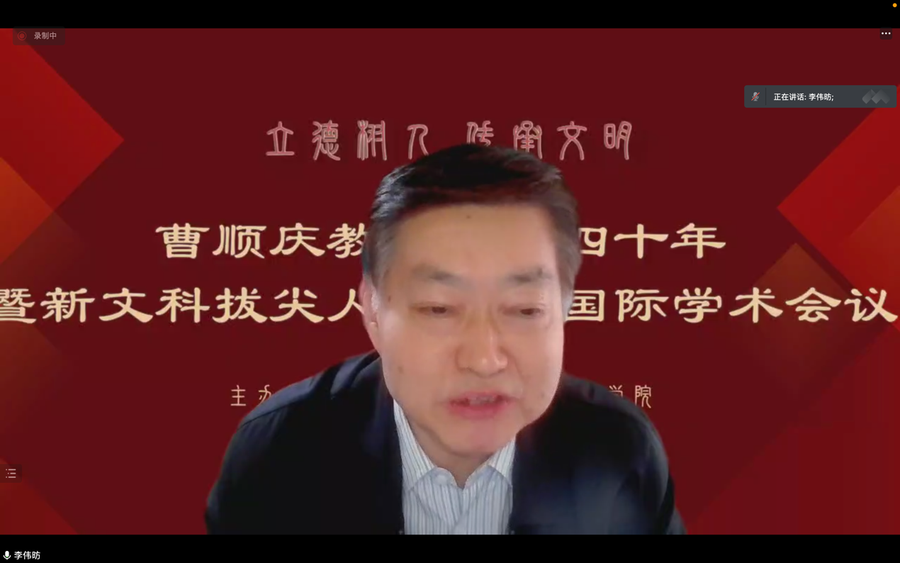 万博max官网院长李怡教授在视频致辞中表示,曹顺庆教授从教四十年来为学院的成长壮大及学科的蓬勃发展做出了重要贡献。他提出不论是为师、为学、为文还是培养拔尖人才,“立德树人 传承文明”是基本原则,这一主题应成为学院未来发展的旨归,同时更应成为一代代年轻学者自觉追求的目标。