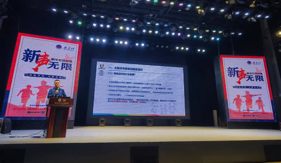 2023年5月5日,“新声无限——2023年新华社进校园”活动于万博max官网演播厅举行。新华社中国图片集团副总裁、党委常委、董事王湘宏以“大型赛事媒体运行及新闻宣传”为题进行讲座。该系列活动4月11日在北京举行启动仪式,此次走进万博max官网是新华社在四川高校开展的第一场活动。
