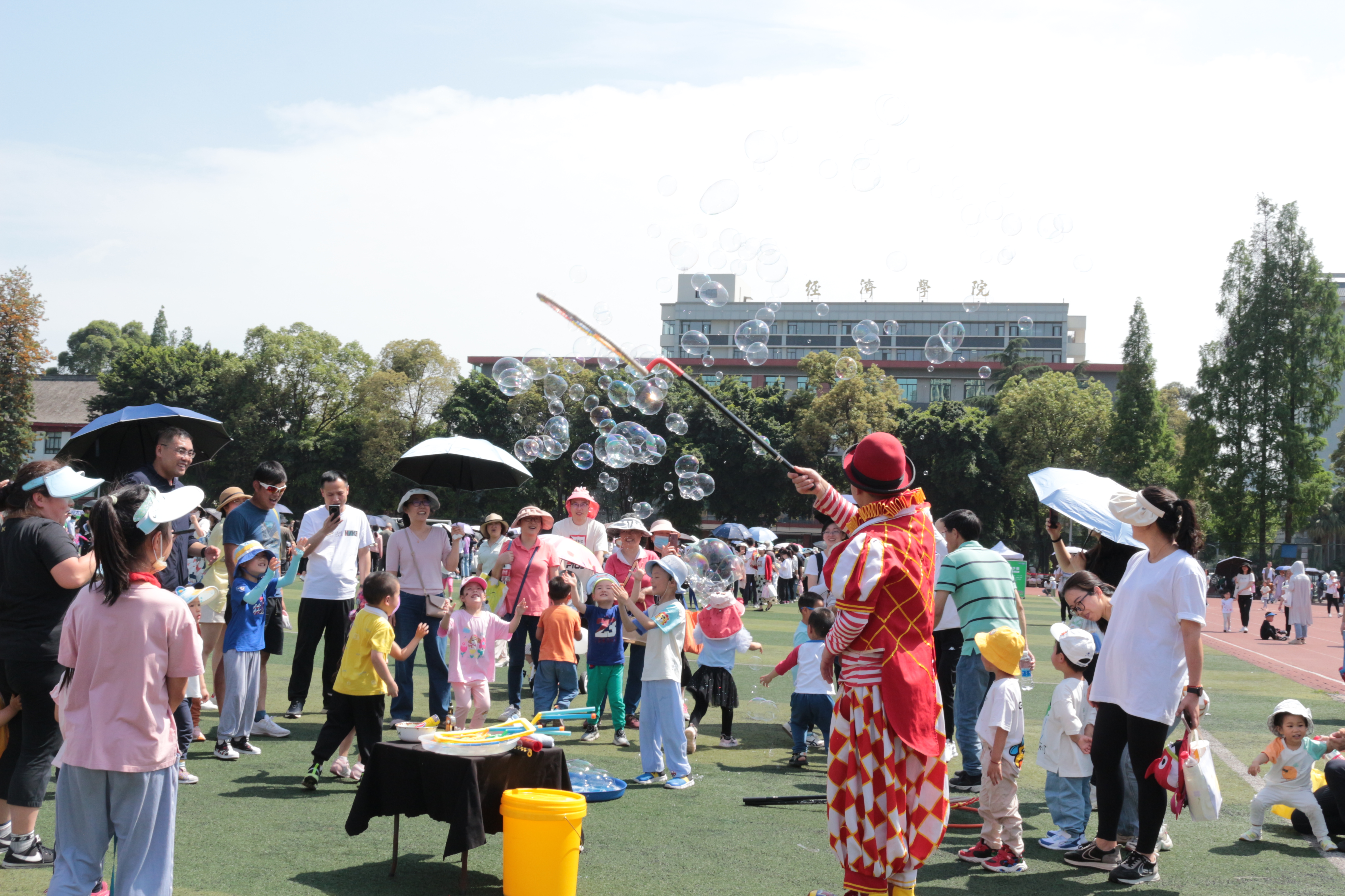 万博官网积极组织教职工及其子女参与本次亲子趣味运动会。活动现场设有“雷神之锤”“丢沙包”“射箭达人”“飞行棋”“枕头大战”等多个趣味运动项目。此外,现场还为大家准备了小丑表演、泡泡秀,与蓉宝、网红青蛙、创意相框等童趣元素合影打卡的游园体验环节。教职工亲子组队参加活动获得印章还可在兑奖区域兑换精美礼品。精心设计的比赛项目激发了大家的运动热情,小朋友们和家长默契配合,努力完成各个运动项目。运动场上加油声此起彼伏,整个场地变成了欢乐的海洋、亲子的乐园,大家的脸上都洋溢着幸福欢乐的笑容。