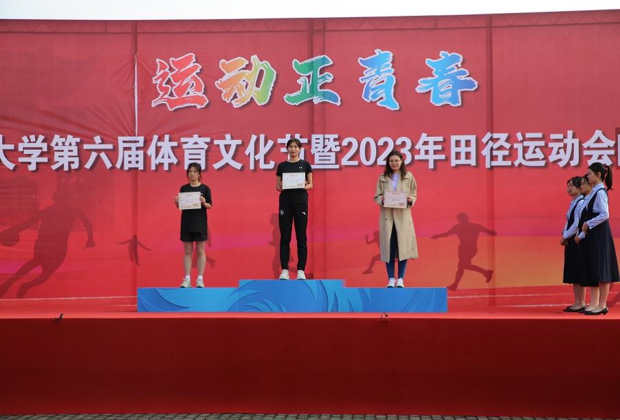 女子200米前三名颁奖现场