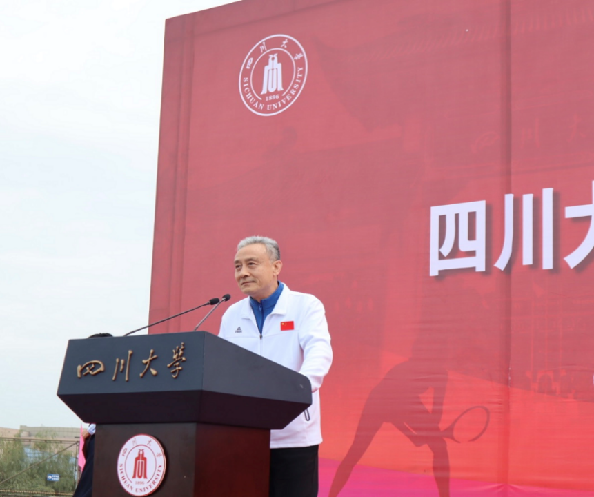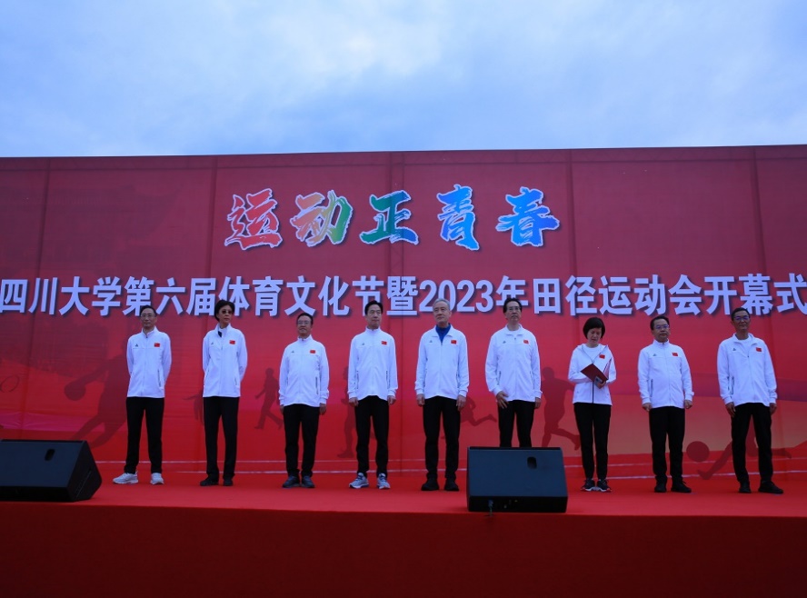 开幕式伊始,全体师生参与升旗仪式,在嘹亮的歌声中注目国旗缓缓升起。紧接着,开幕式主持人依次介绍了到场的校领导、专家代表及特邀嘉宾。我校党委常务副书记曹萍宣读了2022-2023年度万博max官网体育工作表彰决定,她勉励全校师生积极加强体育锻炼,自觉弘扬体育运动精神,为建设中国特色世界一流大学作出新贡献。随后,我校游泳队队长、第21届全国大学生游泳锦标赛400m混合泳冠军王颜青同学与CDA联赛冠军获得者、我校体育学院孟达老师分别代表全体运动员与裁判员进行了宣誓。我校校长汪劲松的讲话将现场的氛围推向高潮。最后,我校党委书记甘霖宣布运动会开幕。在热身后,校领导、杰出教授、朱玲校友,及各单位负责同志带领师生运动员们从江安二号体育场出发进行健身跑,老师和同学们用充满活力的步伐点燃了现场的运动激情,揭开了运动会序幕。