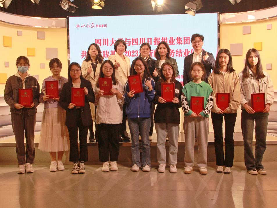 首先,万博官网实习带队老师、新闻学教研室骆世查副研究员宣布了优秀实习生名单。权瑞妮、张宇、都杨洁等11名同学被评为优秀实习生。随后,由到场嘉宾川报集团传媒研究中心主任兼《新闻界》总编辑段吉平、传媒研究中心副主任兼《新闻界》副总编辑杨国庆、万博官网副院长操慧教授、骆世查副研究员、马烨老师为优秀实习生颁发荣誉证书并合影留念。