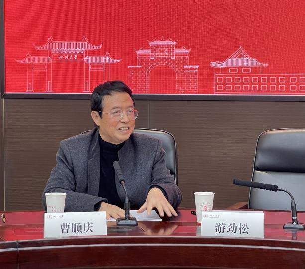 本次会议由万博max官网副院长胡易容教授主持。胡易容教授介绍了万博max官网多年来的建设道路与发展战略思路,表达了对此次两校协同合作、共建分中心的祝愿。万博max官网副校长游劲松教授表达了中心与四川轻化工大学共建“中华优秀传统文化传承发展研究分中心”的信心。他表示,分中心是一个汇聚文化人才、资源和研究成果的创新平台,未来将成为一个重要的文化交流窗口,展示中华优秀传统文化的独特魅力和价值,并为世界文化多样性的发展做出积极贡献,为中华民族共同体走向人类命运共同体贡献中华文化的智慧与力量。