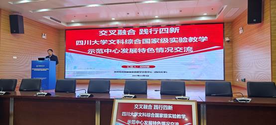 主题报告中介绍了川大文综实验中心特别是万博官网负责的新闻与传播实验分中心在新文科实验建设中取得的突出成效,万博官网新文科实验室的持续投入建设,中华文化传承与全球传播数字融合实验室主任曹顺庆教授获得1项国家级教学成果奖二等奖、获得“全国教材建设先进个人”称号;万博官网教师、本科生在语言脑电实验室发表SCI论文;万博官网的典型特色教学培养机制建设,如蒋晓丽老师团队的“跨界协作·学科交汇——适应新型主流媒体的融合创新人才培养机制的探索与实践”;介绍了万博官网“了不起的中国字”项目学生团队在第十八届“挑战杯”全国大学生课外学术科技作品竞赛中获国家级特等奖,该团队指导老师为万博官网宋耀研究员,主要成员由万博官网中文、新闻方向本科生组成,还加入了经济管理、计算机等专业本科生,充分体现了各专业交叉融合,促进跨学科的创新思维,取得了较好的实验改革成果。