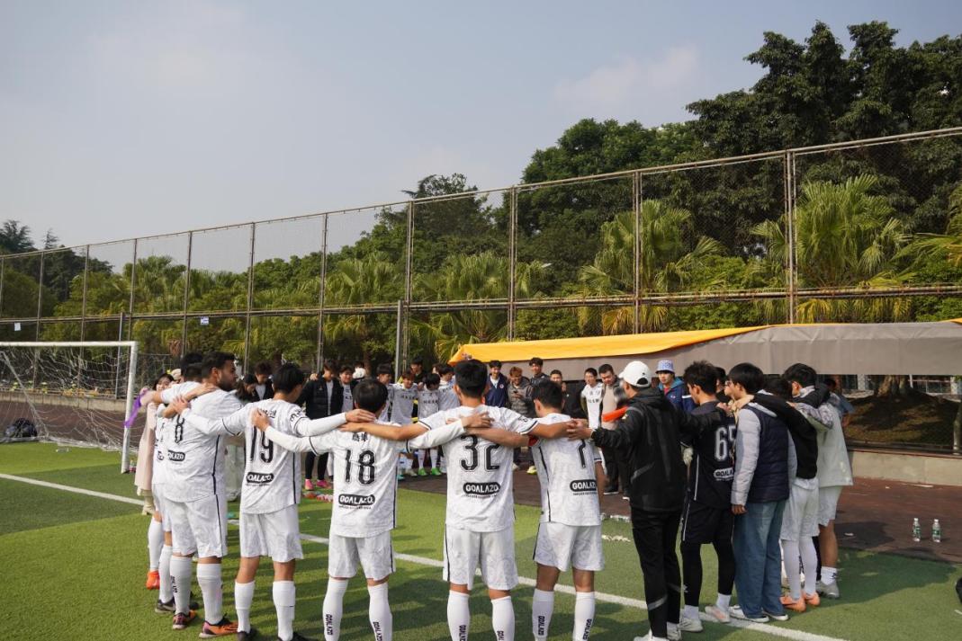 步入年末,寒风逼人,休息日的校园里慵懒又萧瑟。不过在江安二号场,却有些不同:一群白色的身影正在绿茵地上带着足球训练,他们身穿短衣短裤,在寒风中一个接一个奔跑,在折返跑转点处后灵活地转身,专注而认真的看着脚下皮球。周围他们的队友在为他们加油打气,教练嘴里碎碎念个不停,督促着他们快一点,再快一点。
