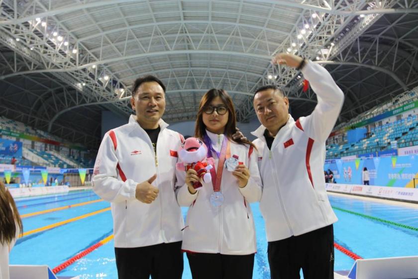 自2021年开始,学校设立“高水平游泳队夺冠计划”项目,持续为游泳队的训练和比赛提供支持,为游泳队提供强大助力。游泳队内部氛围融洽,徐若寒与队友们保持着亲密的关系。备赛过程中压力难免存在,面对这种“力不从心的感觉”,她会选择听歌放松,但她更喜欢和队友们一起city walk、去KTV唱歌,队友之间也经常聊天谈心、相互鼓励,安抚彼此的情绪。和教练谈心也是缓解压力的好方式,除了鼓励加油,教练还会对她进行科学的指导,以放松心情。