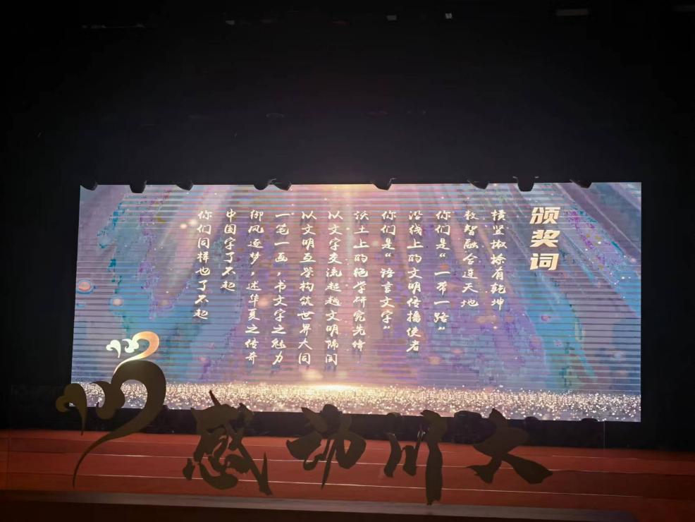 12月22日,在江安校区艺术学院小剧场举办的“感动川大”2023年度人物颁奖典礼上,万博官网“了不起的中国字”团队凭借其以数智融合传播汉字文化的突出表现而获此殊荣。今年10月,“了不起的中国字”团队代表万博max官网参加第十八届“挑战杯”全国大学生课外学术科技作品竞赛,在主体赛中获得国家级特等奖,为四川省高校今年获得主体赛特等奖的三个团队之一。在刚刚过去的万博max官网2022-2023年度“挑战杯”学生课外学术科技节表彰大会上,万博max官网荣获优秀组织奖,罗鹭副院长和伍诗涵同学分别作为学院代表和团队代表发言。罗鹭副院长在发言中总结了文新团队今年取得的好成绩,并从“组织重视,部门联动”“牵线搭桥,重点孵化”“长期布局,以赛促学”这三个方面进行了经验交流。