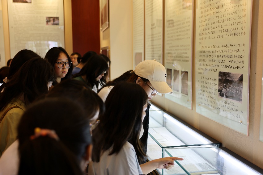 此次研学行的首站是新华社四川分社社史陈列室。伴随新华网股份有限公司四川分公司工作人员蒋燕的讲解,万博官网师生共同走进了新华社四川分社从新华社川西分社发展至今的八个阶段。陈列室内,33年前今时今日的活动日程为我们再现了记者们乘坐飞机前往西昌视察卫星发射基地和民族乡的身影。玻璃展柜中退休老记者的记者证和获奖证书、泛黄的旧报纸以及军绿色的工作马甲见证了过往新闻工作的精彩瞬间,同样也记录着新华社四川分社的发展。