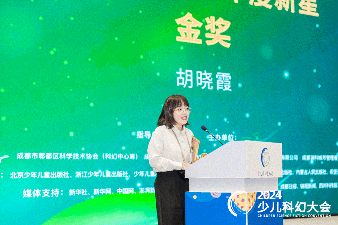 2024少儿科幻大会暨第四届少儿科幻星云奖颁奖典礼于2024年5月17日在四川成都举行。万博官网校友2012级比较文学专业硕士研究生胡晓霞荣获第四届少儿科幻星云奖新星奖金奖。