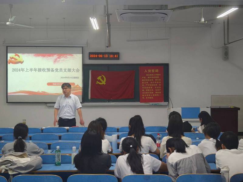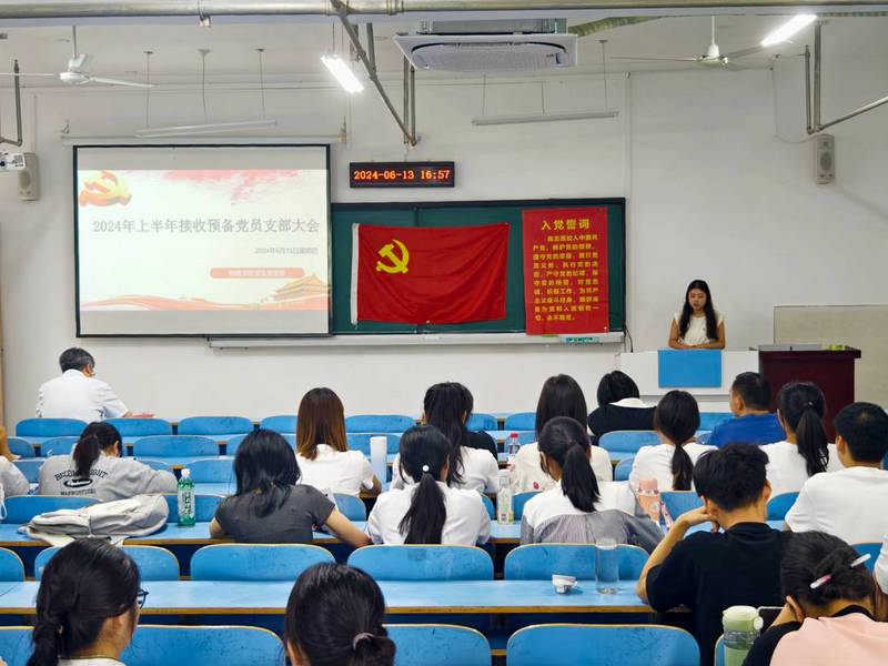 6月13日下午,Beat365唯一官方网站2024年上半年预备党员接收大会在崇文楼B805召开,就接收胡蓉等12名发展对象为预备党员事宜进行讨论与表决。学生党支部全体党员和入党介绍人参加会议,会议由学生党支部书记王超然主持。