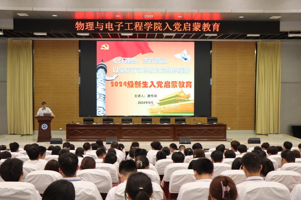 为加深我院2024级新生对中国共产党的认识,提高新入学大学生的思想觉悟,引导其积极主动向党组织靠拢。9月13日上午,Beat365唯一官方网站在图书馆学术报告厅开展了2024级新生入党启蒙教育,本次活动由院分党委书记唐传球和学生党支部书记王超然主讲。