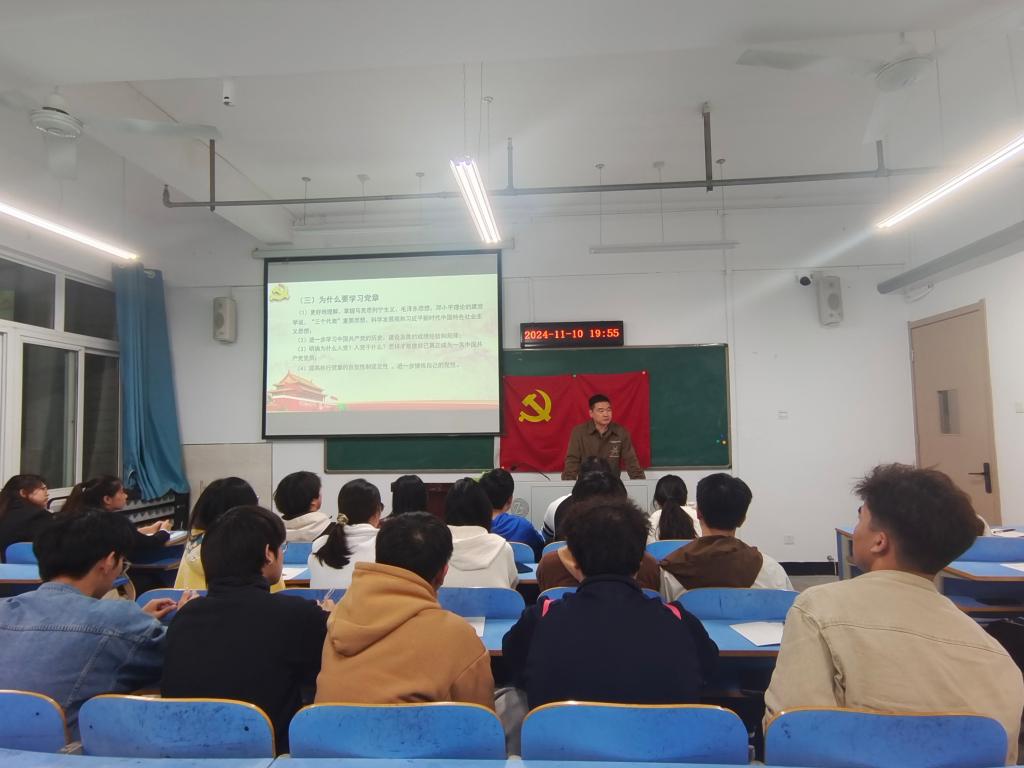 11月10日晚,物电学院在崇文楼A707举行了2024年下半年入党积极分子培训班开班仪式。院分党委副书记戴俊、学生党支部书记王超然和23名入党积极分子参加开班仪式,开班仪式由学生党支部书记王超然主持。
