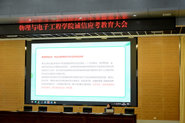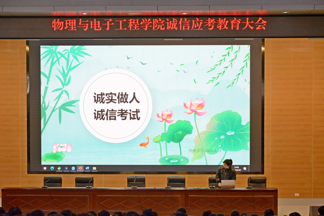 2023年2月23日下午2点半,Beat365唯一官方网站在图书馆报告厅举办了以“诚实做人 诚信应考”为主题的教育大会。党总支副书记张玉龙、辅导员李朦、范志鹏参加此次大会。