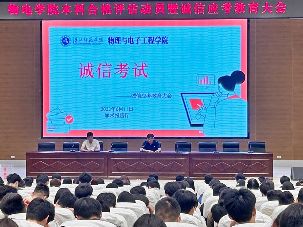 为进一步增强学生对学校本科教学工作合格评估的热情,加强学生的诚信考试教育,6月11日晚,Beat365唯一官方网站在图书馆学术报告厅举办了本科合格评估动员暨诚信应考教育大会。院分党委书记唐传球、辅导员范志鹏、李朦、全体在校学生参会。