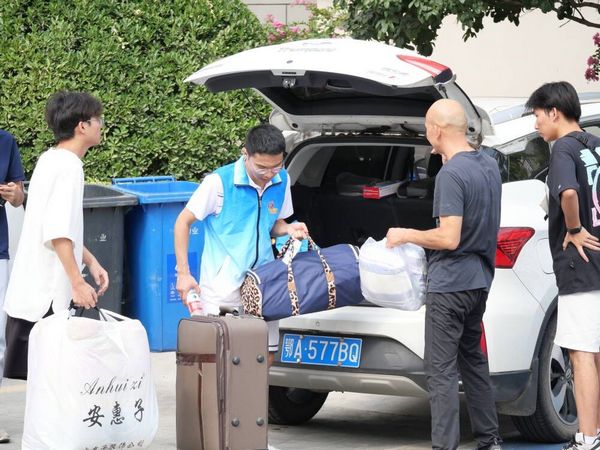北京路校门口、宿舍楼下、迎新点等岗位的“蓝马甲”志愿者们,或帮助新生搬行李、报到,或为他们贴心介绍校园……