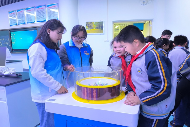 4月10至12日,物电学院“e点光”志愿服务队携手物理演示实验室开展实验室开放日活动。十堰市外国语小学的34名师生走进物理演示实验室体验科学的奥妙。