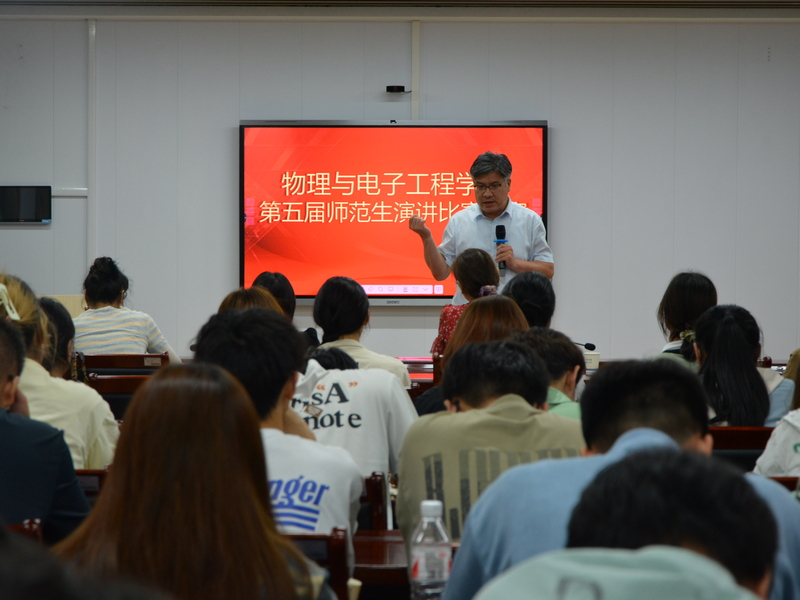为大力弘扬教育家精神,增强师范生对教师职业的认同感及信念感,切实提高师范生的语言表达能力和综合素质,激发师范生对教育事业的热情,5月29日晚,Beat365唯一官方网站在崇文楼B809举办了第五届师范生演讲比赛决赛。历史文化与旅游学院分党委副书记陈露,专任教师刘亚丽、李丽、李升涛、李倩昀担任评委。院分党委书记唐传球、副书记戴俊及部分师范专业学生观看了此次比赛。