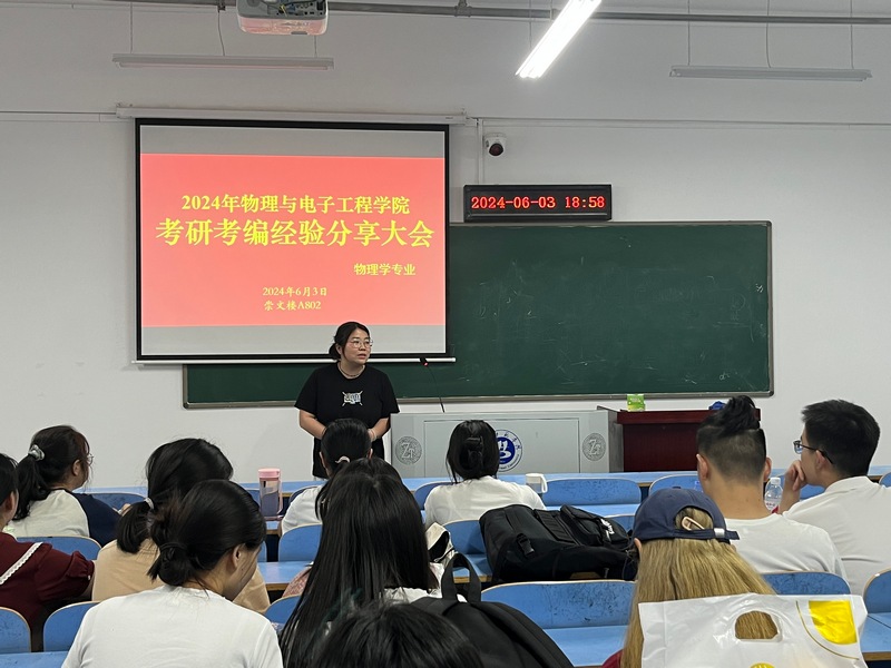 为加强学院学风建设,助力2021级学生研究生、教师编制和国家电网考试,近日,物电学院分专业开展了考研暨就业经验分享会,邀请了2024届部分毕业生出席并交流经验,2021级全体同学到场参会,辅导员李朦主持了分享会。