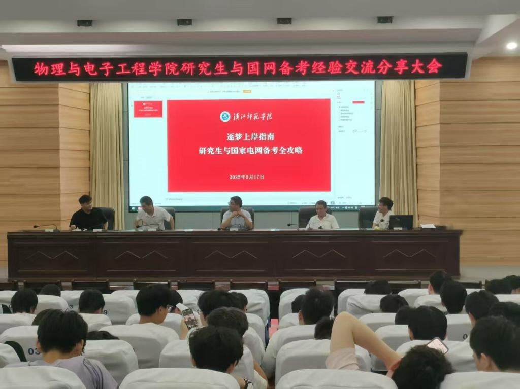 5月17日晚,物电学院在崇文楼C101报告厅举办国网考研经验分享会。副院长刘锋、相关教师和百余名学学生参会,会议由电气工程教研室主任王汉斌主持。